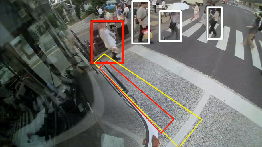 AIで歩行者や転倒した人などを検知し、衝突リスクを早期に察知することでドライバーに注意を促します。
