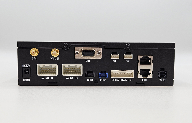 | ポート | SD Slot ×1 USB ×1 DC OUT ×1 RCA ×1 RS232 ×2 Ethernet ×1 Video/Audio in ×8 Car Signal&AV OUT ×1 |