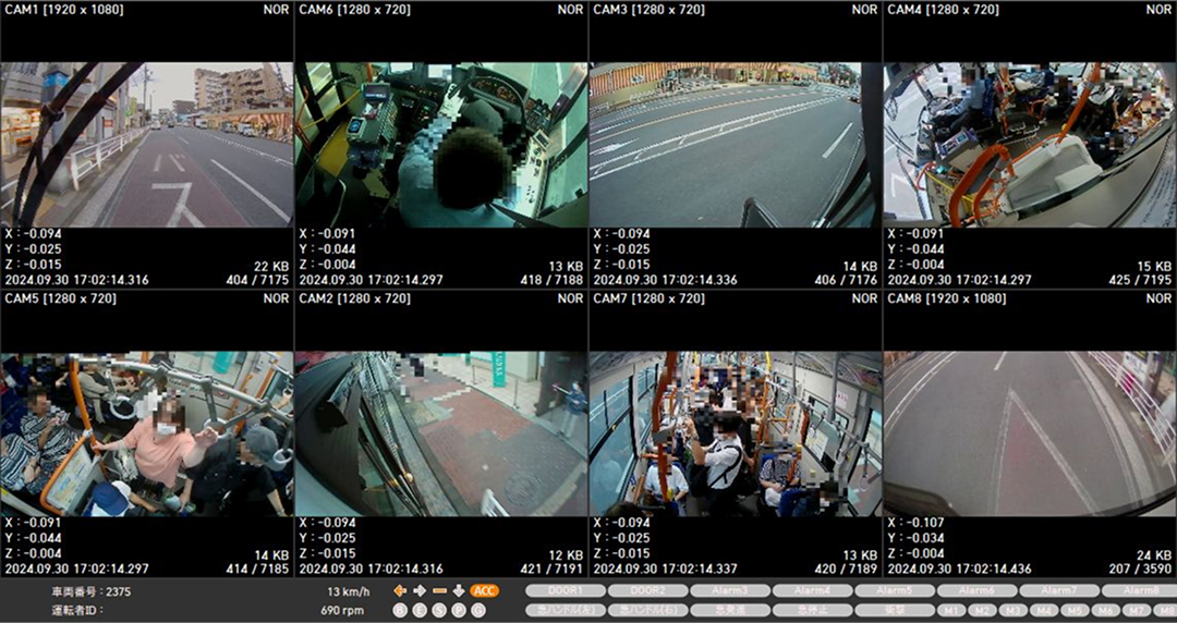 搭載されたAIドラレコ/デジタコとクラウドサーバーで通信することで運用管理者の業務効率化を図るとともに乗務員の安全運転意識の向上を実現。