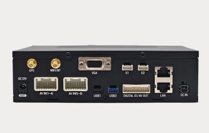 | ポート | SD Slot ×1 USB ×1 DC OUT ×1 RCA ×1 RS232 ×2 Ethernet ×1 Video/Audio in ×8 Car Signal&AV OUT ×1 |
